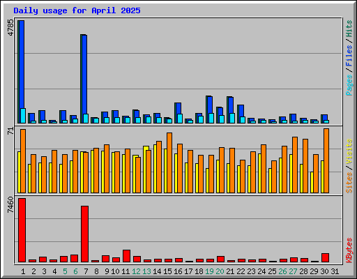| Day | Hits | Files | Pages | Visits | Sites | KBytes | ||||||