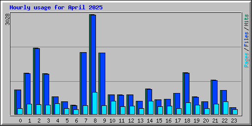| Hour | Hits | Files | Pages | KBytes | ||||||||